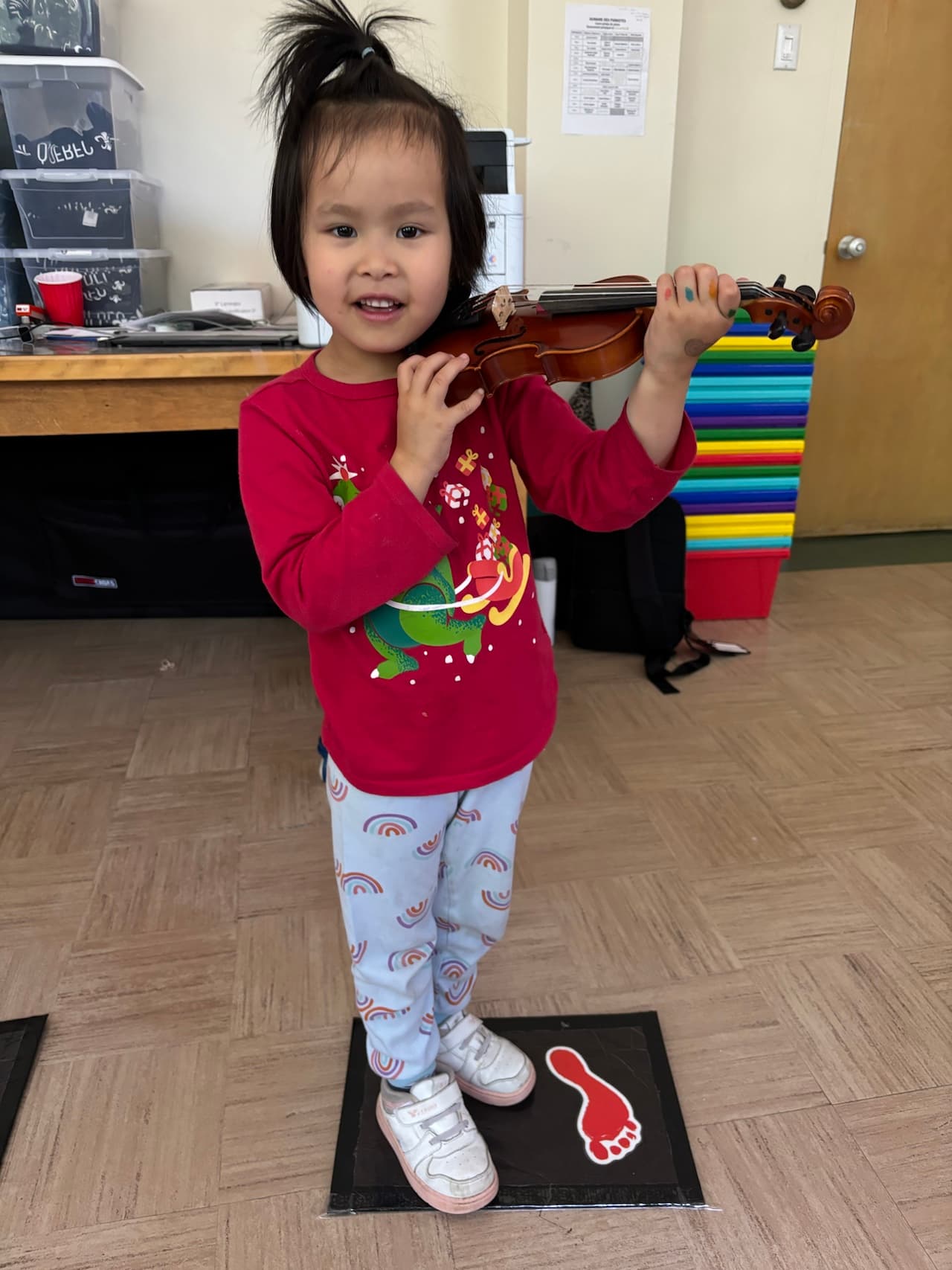 Sous la forme de cours de groupe, le programme d'éveil musical permet à l'enfant de développer son oreille et son sens rythmique à travers l'apprentissage du violon.